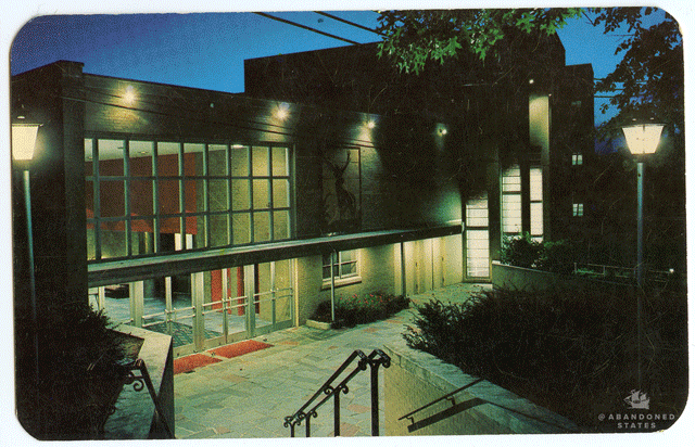 After a fire destroyed the main building at this resort in the Poconos, a replacement went up in the early ’70s. It is a truly striking sight, a modernist spaceship tucked away deep in the woods. (Photograph by Pablo Iglesias Maurer, postcard by Kardmasters)