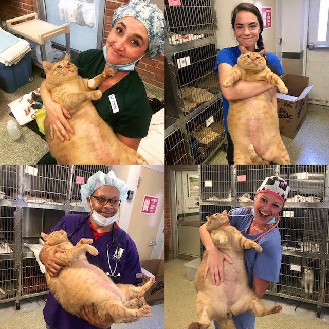 In June, when the Humane Rescue Alliance put him up for adoption, they tweeted that their staff has seen a lot, “but we’ve never seen a 35 pound cat!” This is what he looked like: