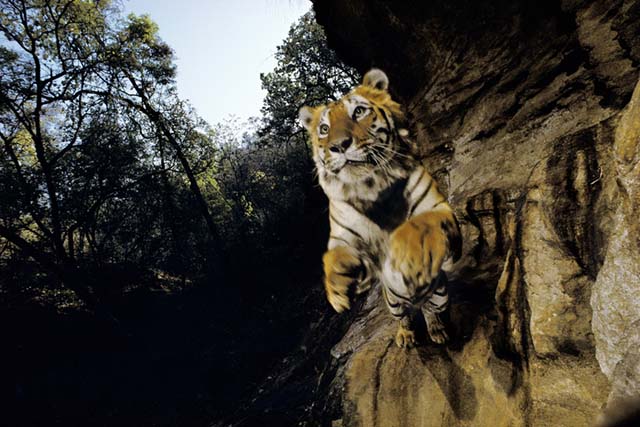 A tiger named Charger is photographed using a camera trap,Bandhavgarh National Park, India, 1996. “WILD: Michael Nichols”open at the National Geographic Museum in Washington, D.C. from October 12, 2017 through January 15, 2018. (Photo by Michael Nichols/National Geographic)