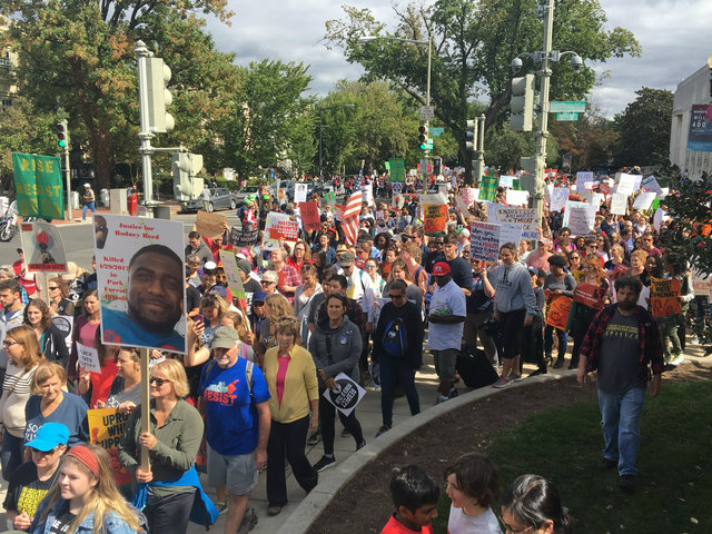 Speakers at the mass rally included Philando Castile’s mother Valarie, feminist icon Gloria Steinem, actress and producer Gina Belafonte, Women’s March organizer Linda Sarsour, and D.C. pastor, activist and Terrence Sterling representative Steven Douglass. M4RJ’s demands included that Confederate monuments be removed, a greater focus on indigenous cultures, colonialism and slavery in textbooks, and more rigorous investigations into hate crimes.