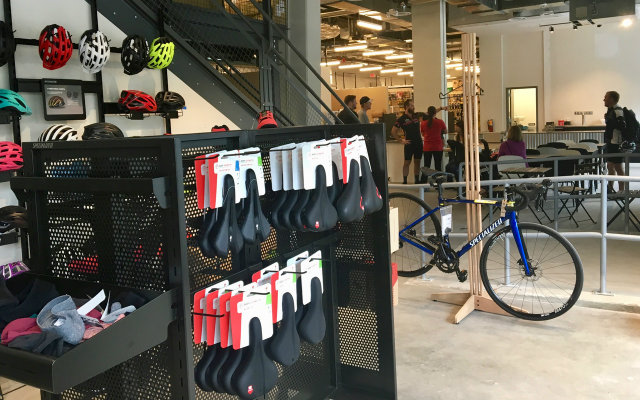 There is one major new addition to the space, however: The store’s Velo Café, where those waiting for a bike repair or simply passing by can stop in for a treat. Bethesda Bagels and Souk Bakery goods will be on-hand, as well libations like Vigilante coffee, wine, spirits by Jos A Magnus Distillers, and beer by 3 Stars, Right Proper, and Hardywood Park breweries.