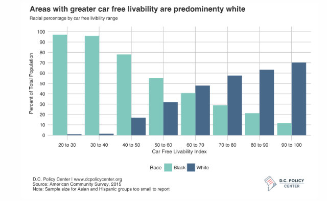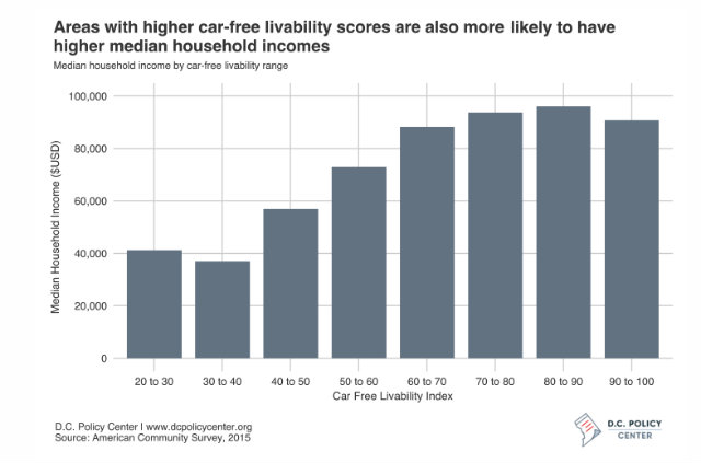 And, in fact, Smith also found a close correlation between high car-free living scores and areas with higher incomes, as well as predominantly white neighborhoods.