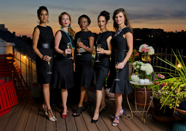 A group wearing the black capsule dress from Maven Women, a D.C.-based ethical clothing line. (Photo by Verena Radulovic)