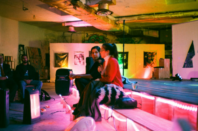Nidia Olvera-Hernández, an anthropologist who teaches about the history of drugs in Mexico City (left), and Natalie Ginsberg, policy and advocacy director for the Multidisciplinary Association for Psychedelic Studies, speak at a D.C. Psychedelic Society event at Uptown Art House on Dec. 6, 2017. (Photo by DeAndre Miller, courtesy of the D.C. Psychedelic Society)