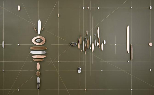 Carolina Sardi, Grandfather, Cricket and I, 2016; Plated steel over painted wall, 91 x 156 x 2 in.; (Courtesy of the artist and Panamerican Art Projects Miami; © Carolina Sardi; photo by Mariano Costa Peuser)