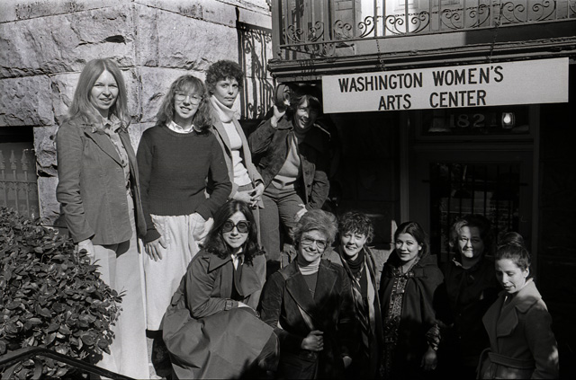 WWAC Members standing in front of its original headquarters on Q St. NW, winter 1978-79. Photo by Gail Rebhan.
