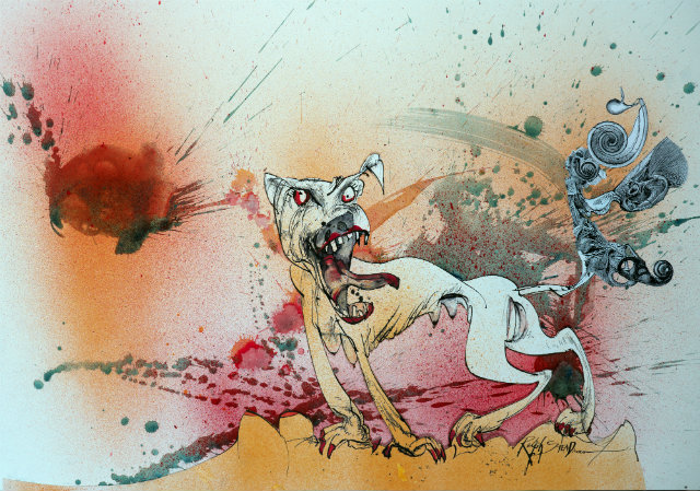 Ralph Steadman’s work appears on Flying Dog Brewery’s beers, including the Raging Bitch IPA. (Image courtesy of American University)