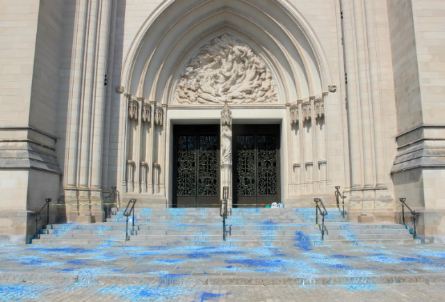 If you stand outside Washington National Cathedral, you’ll see blue splotches covering its hundred-year-old steps. The paint starts at the Cathedral’s imposing front entrance, dribbles down the stone steps, and spreads like water across the sidewalk.