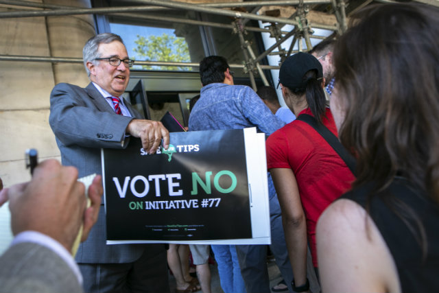 “I stand with you to make sure that Initiative 77 does not become law,” Ward 2 councilmember Jack Evans told the gathered group of opponents through a bullhorn on Monday before announcing that a bill will be introduced to repeal the measure. Before the vote, a supermajority of councilmembers and Mayor Muriel Bowser all came out against Initiative 77.