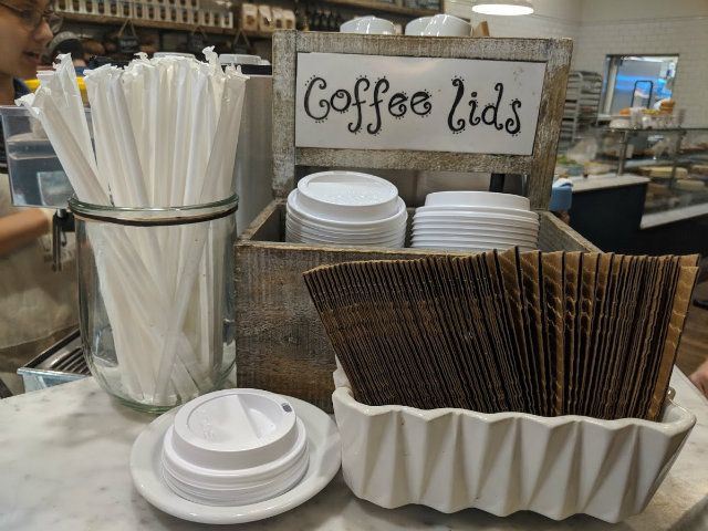 Guidance on the DOEE website says plastic straws are compliant under the legislation because they are “smaller than two inches in two dimensions.” Small utensils, coffee stirrers, and condiment lids are also listed. Why the size specification? According to the guidance, items smaller than two inches are not accepted by the District’s recycling program. DOEE recommends that plastic straws be thrown away after use. The recent recycling guide, released in October, also does not include plastic straws.