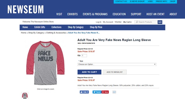 A museum dedicated to showcasing the importance of journalism and journalistic accomplishments throughout American history is now selling “fake news” T-shirts at its online gift shop.