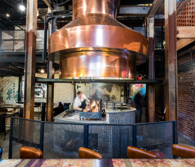 Everything at Maydan is cooked over this giant hearth in the middle of the dining romo. (Photo by Rey Lopez)