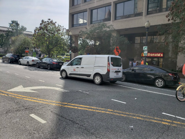 I KNOW FOR FACT @DCDPW if I double parked like this to run into @McDonalds .. I would have been ticketed and towed.. @babesandballers @MayorBowser @tkradio @danasdirt #BlockingTheBikeLane pic.twitter.com/pwwwrE427s