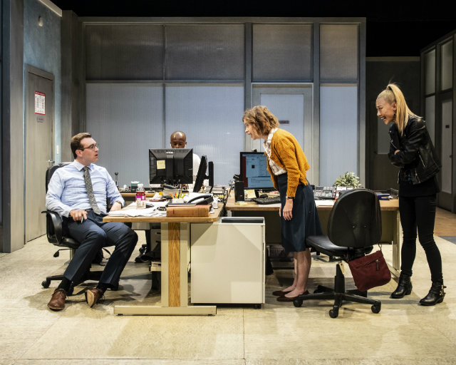 From left: Conrad Schott, Justin Weaks, Megan Graves, and Eunice Hong in Woolly Mammoth’s “Gloria.” (Photo by Teresa Castracane courtesy of Woolly Mammoth)