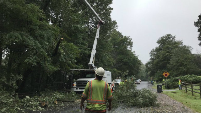 VDOT crews trim hazardous trees near Chantilly in Northern Virginia ahead of the expected rain from Hurricane Florence. (VDOT Northern Virginia District / VDOT Northern Virginia District)