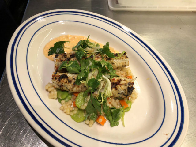 To highlight eel’s versatility, Bailey made for me a light, summery entrée featuring grilled eel over a bed of couscous and fava beans with an herb salad.