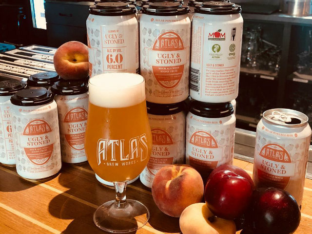 Atlas brewed three batches of Ugly & Stoned, each a little different based on the selection of stone fruit. Vilarrubi says the first batch had more peaches and nectarines while the third and final batch, currently on tap and available in cans, turned out a smokier flavor.