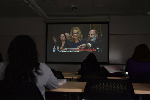 The women discussed how wealth and class may have played a role in the alleged assault. One student said that may have allowed Kavanaugh to feel like he didn’t have to follow the same rules others in society do have to follow. Ford and Kavanaugh both attended private high schools in the Maryland suburbs of D.C.: Ford at Holton-Arms in Bethesda and Kavanaugh at Georgetown Prep in North Bethesda. None of the students in the room, about half of whom grew up in D.C., attended private school. But they’ve all had experiences like the one Blasey Ford described, or they know people who did.