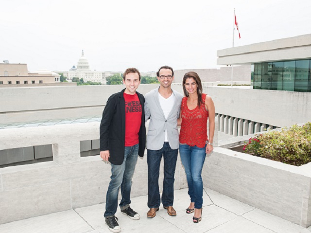 Tommy McFly (left) and his co-host Kelly Collis. In the middle is Darik Kristofer, who is so far the only surviving host at 94.7 Fresh. (Photo by Connect 2 Canada)