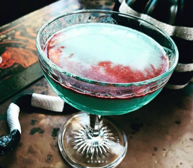 Then there’s the Dante’s Inferno Room, named after a nightclub that Beetlejuice visits. At Left Door, it’s a blend of mezcal, orgeat syrup, coconut cream, lime, and a house-made “fire tincture” made with jalapeno, habanero, and serrano peppers.