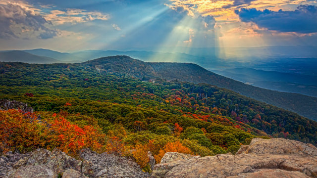 If you’re ready to get out of the city immediately, the leaves are beginning to change in Shenandoah National Park’s higher elevations. Peak foliage will most likely hit during the week of Oct. 22—a perfect time to hit Skyline Drive.