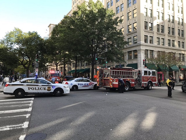 D.C. Fire and EMS received a call about the incident at 9:11 a.m. and showed up on scene at 9:14 a.m., says Doug Buchanan, public information officer for D.C. Fire. A Twitter report said the injured person was a cyclist, but Buchanan says there were no signs of a bicycle.