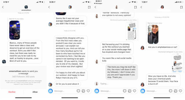 It started with a note from Solidcore’s founder and CEO, Anne Mahlum, about an hour after Jade posted. “Sorry you didn’t like the class, but there was really no need for you to be rude to my staff, or frankly to anyone … ever,” Mahlum’s message reads. “Best of luck to you.”