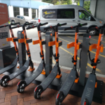 The scooters, which can hold up to two passengers, cost 35 cents per minute and are accessible using a phone app, according to the Muving website. The vehicles are 100 percent electric, with a 45 mile range and a top speed of 30 miles per hour.