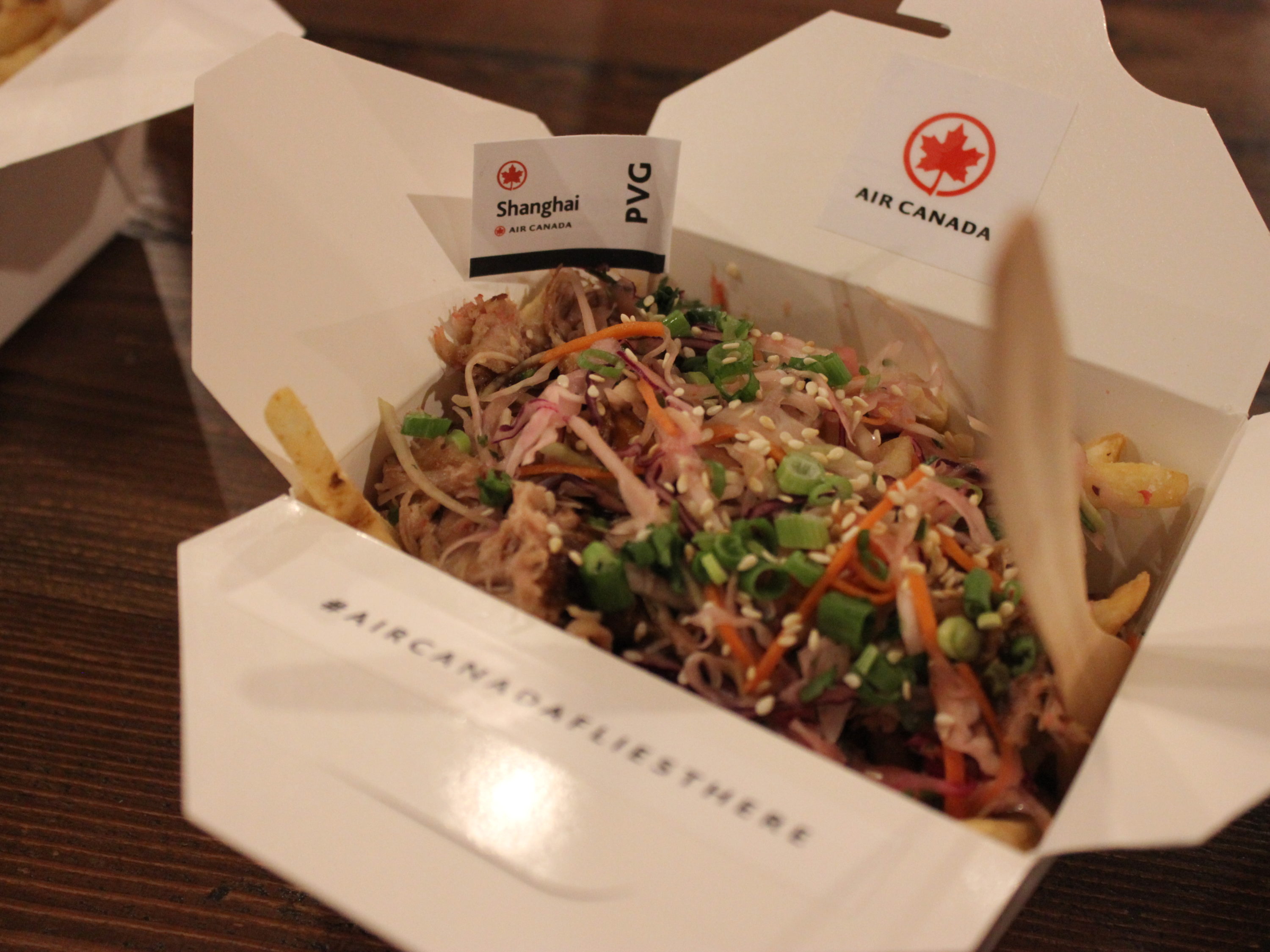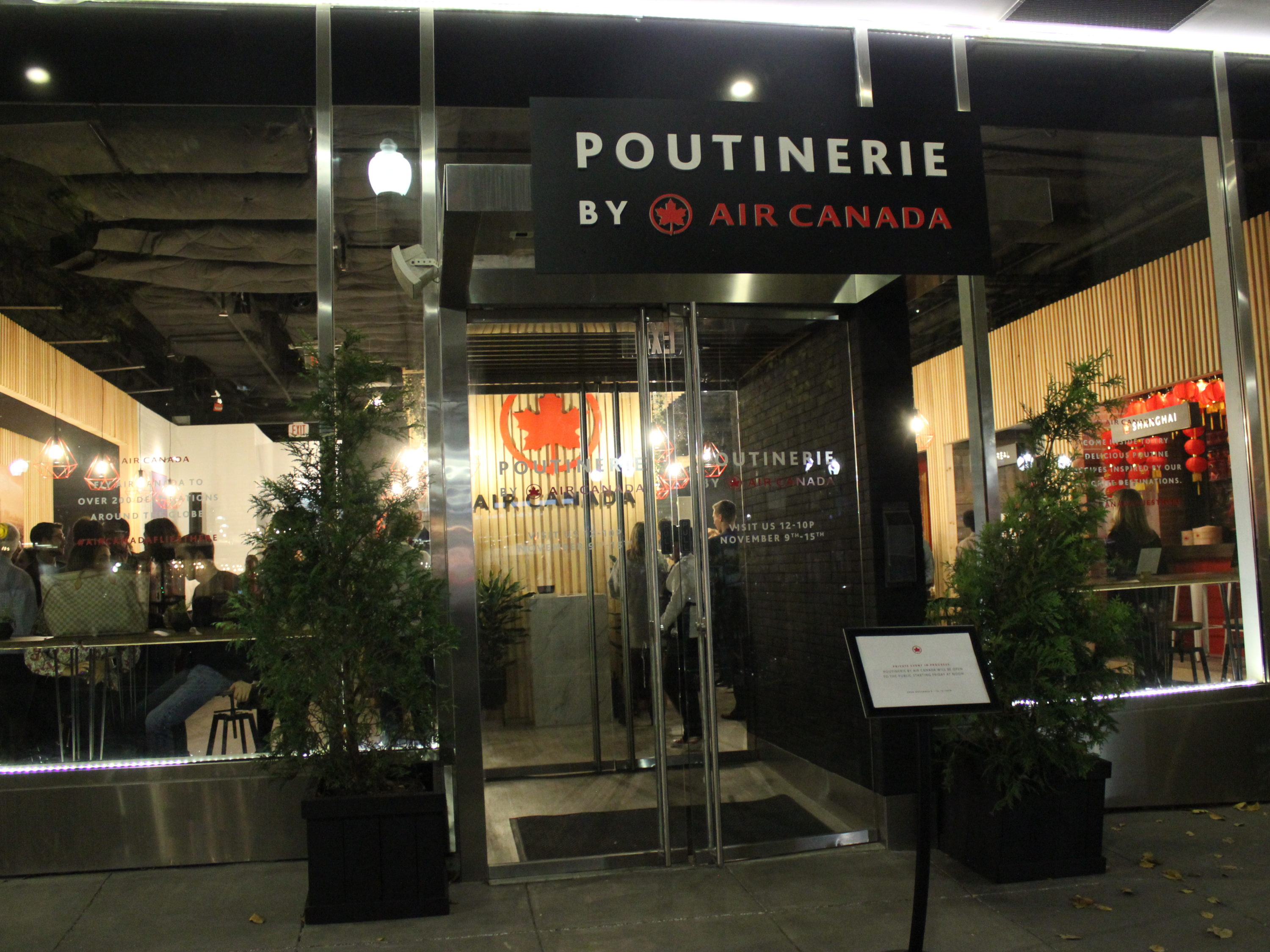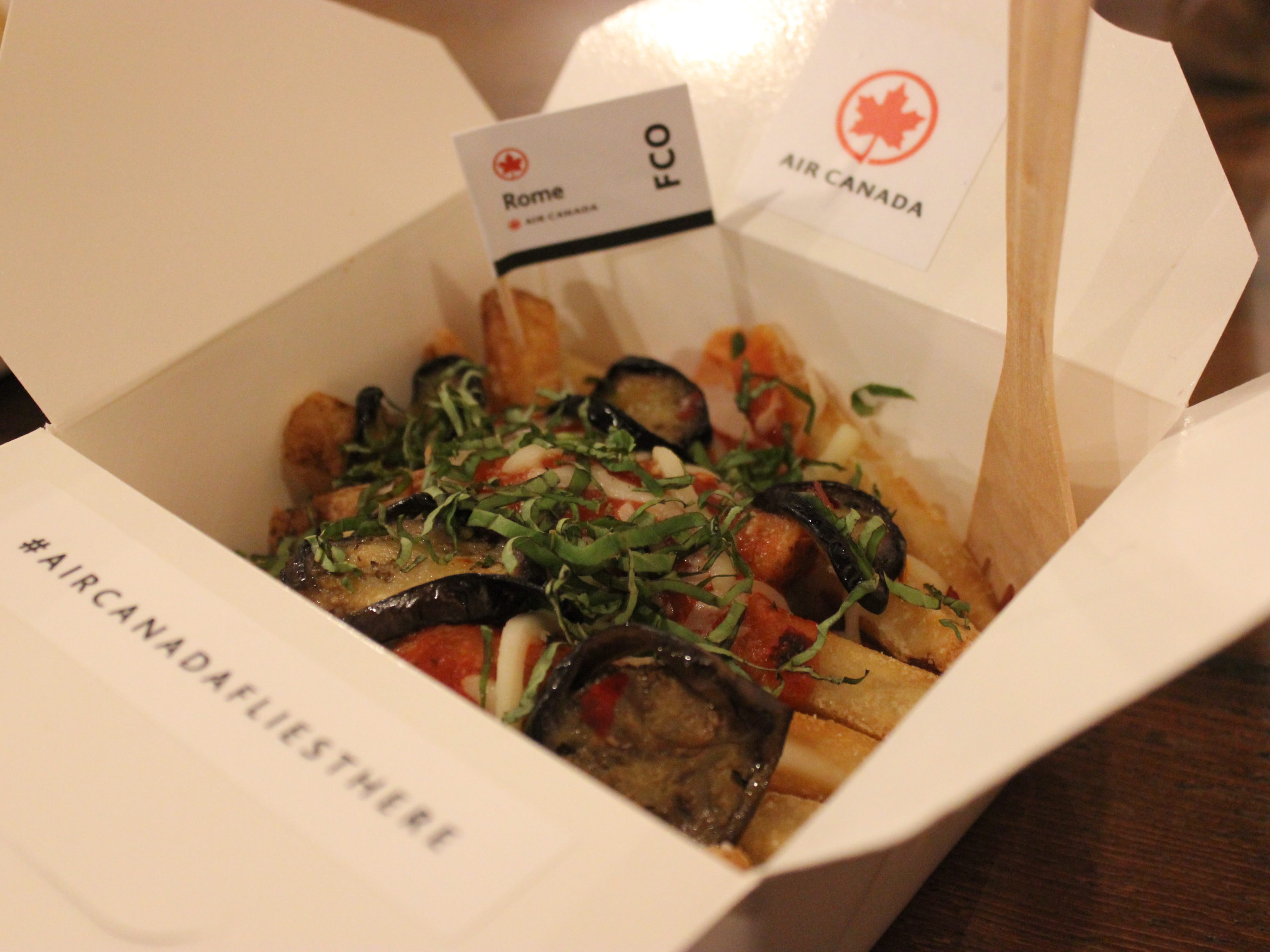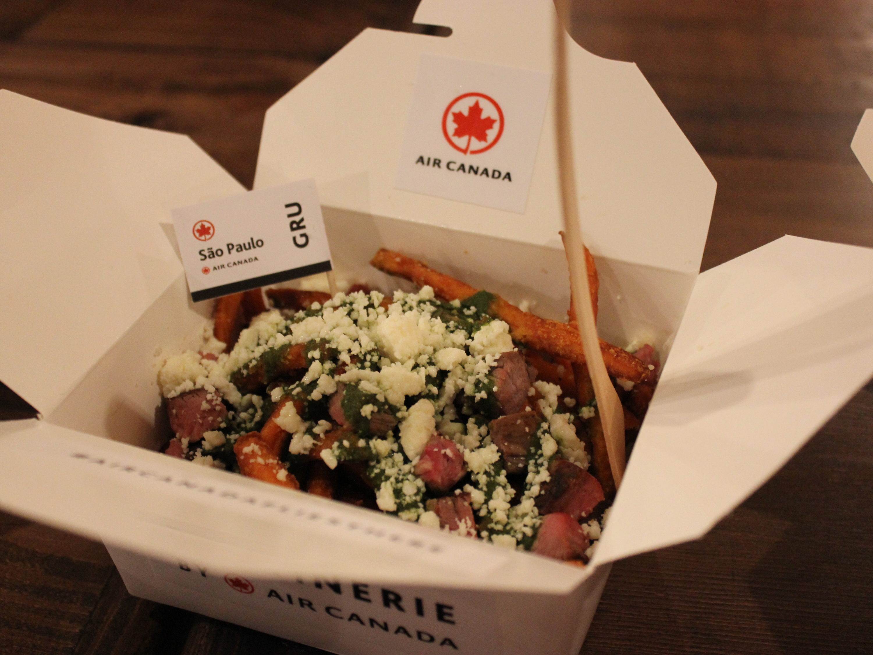Sadly, Air Canada is not offering tiny bags of peanuts or neck pillows at the Poutinerie.