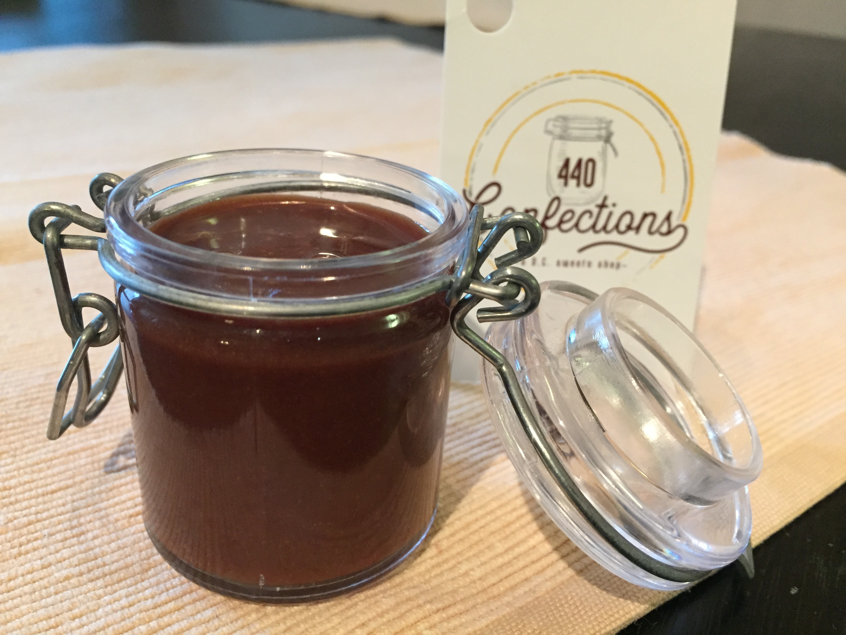 440 Confections‘ first products are what Annick calls Jars of Goo, based on one of her favorite snacks. “I think it’s just a good treat to eat a little Nutella or peanut butter straight out of the jar,” she says. Her version of those spoonable sweets come in single-serving jars (about 1.5 fluid ounces each) and in flavors like cinnamon milk chocolate, pumpkin spice caramel, milk chocolate peanut butter with crispy flakes, and passion fruit white chocolate. You can dunk pretzels in it, slather it on graham crackers, or, if you’re like Annick, “just eat it straight out of the jar.”