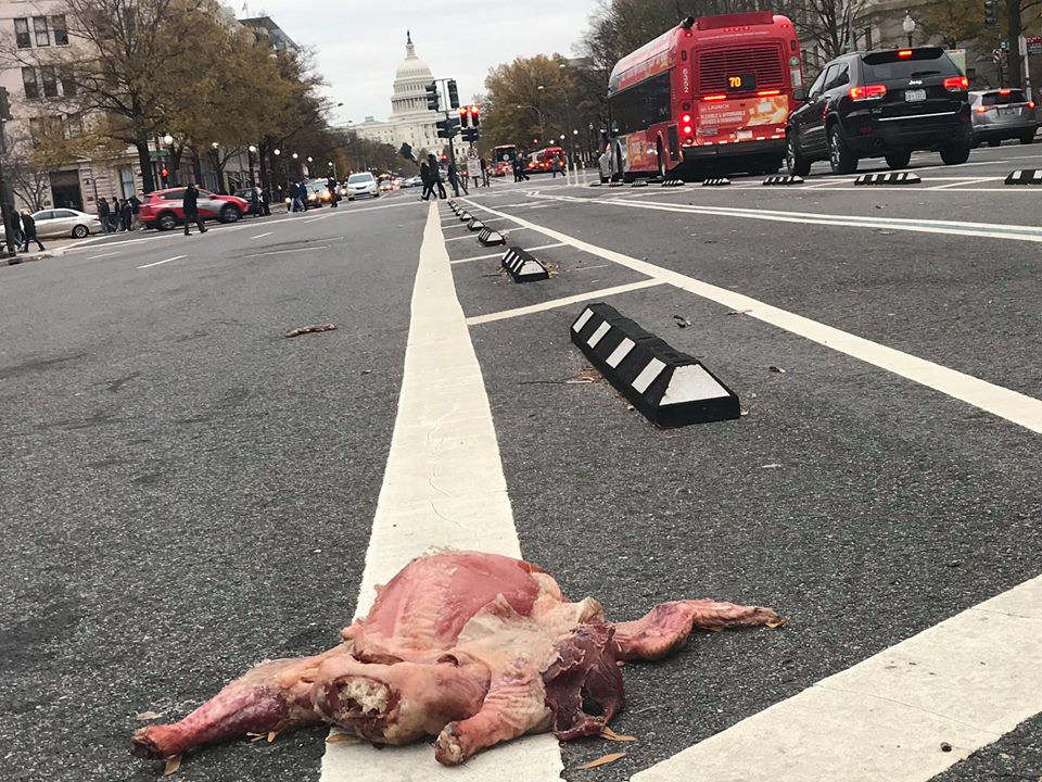 But by 10:30 a.m. on Tuesday, however, the turkey carcass was gone, apparently picked up by a D.C. government truck. Nothing raw can stay.
