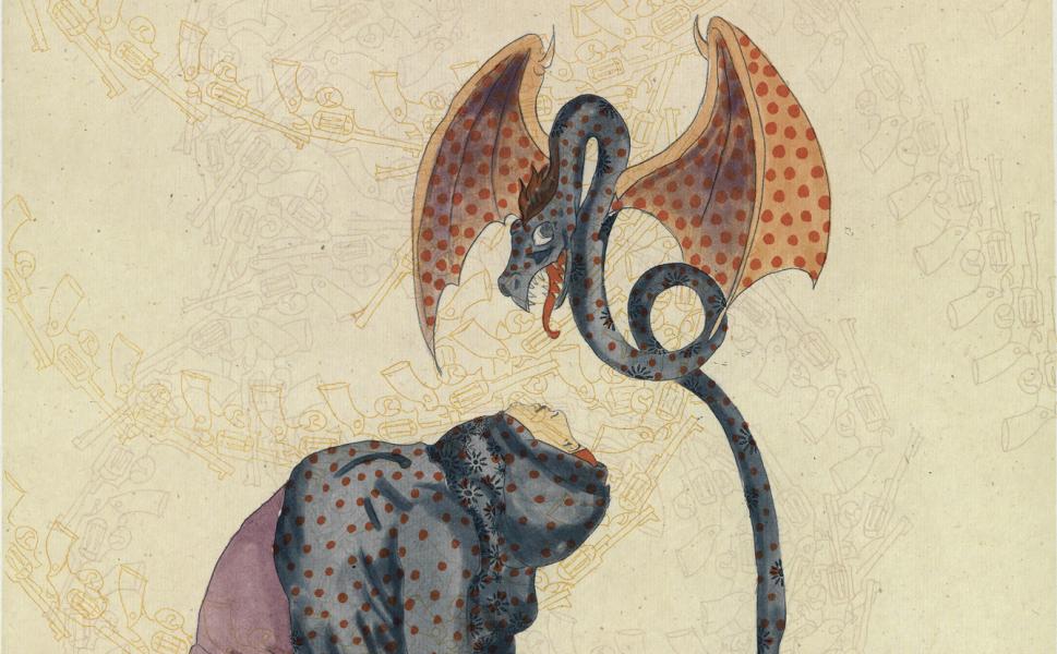Pakistani-American artist Ambreen Butt was trained in traditional Indian and Persian miniature painting, but has transformed the genre to focus on contemporary women and politics. According to the National Museum of Women in the Arts, her work, “tackles larger global issues of oppression, violence, and the role of art as social commentary … while also speaking to broader ideas about women making their marks on society.”