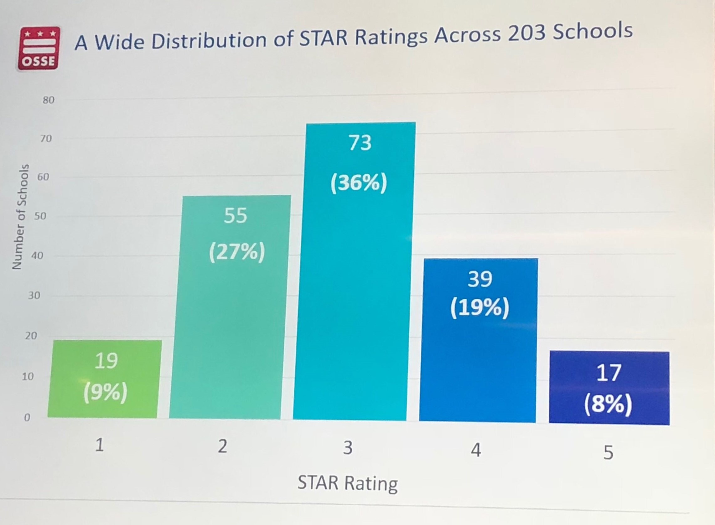 However, Kang’s tone was much more solemn when questioned about the distribution of one-star schools—many appeared packed in Ward 8, which had effectively become a five-star school desert. Ward 7 also lacked schools with 5-star ratings.