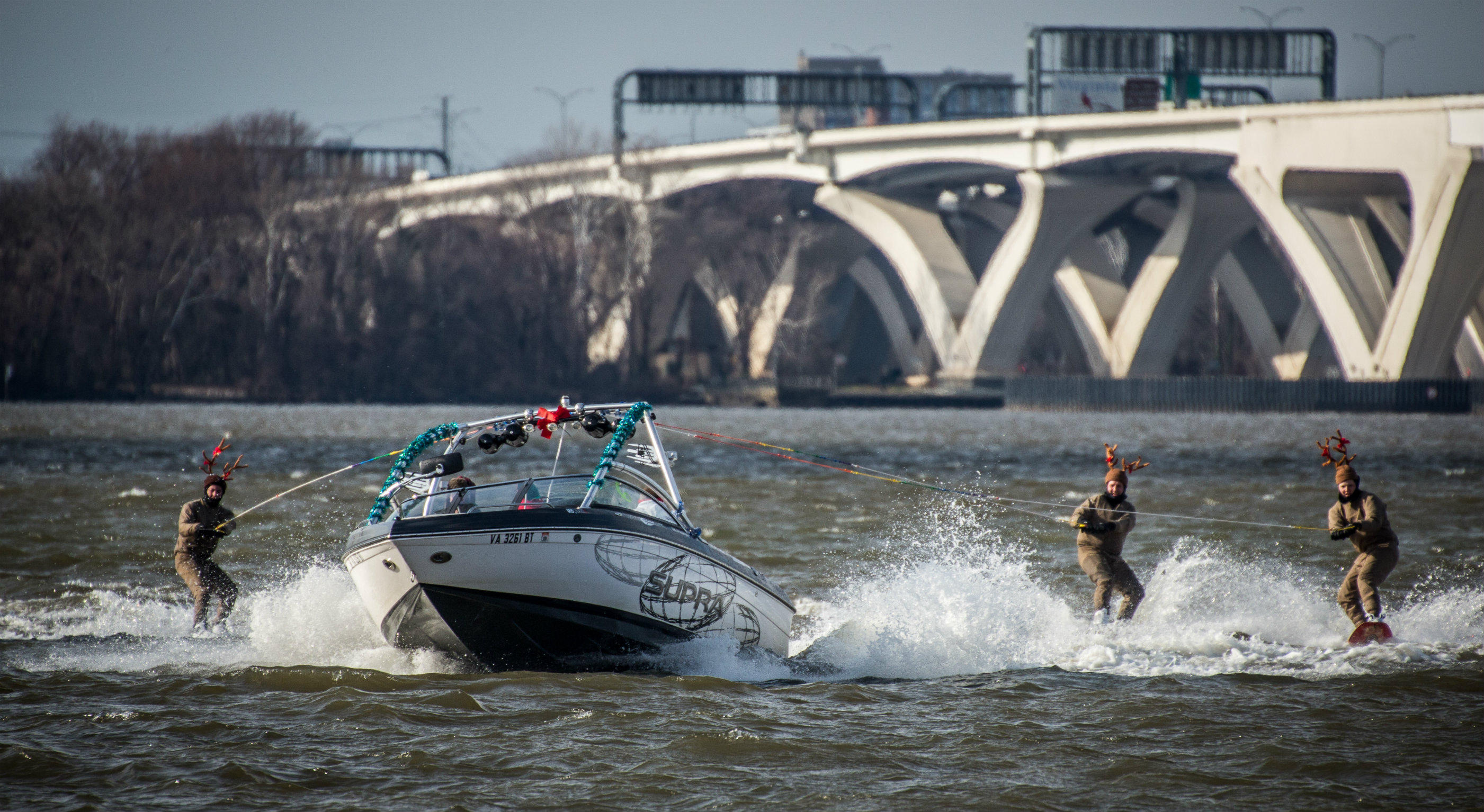 You better watch out and you better not cry because Santa Claus is water skiing down the Potomac. Every Christmas Eve since 1986, a group of warm-blooded water skiers brave the afternoon’s freezing cold and put on what just might be the “longest-running water ski Christmas show” in the world. There are reindeer a-flipping, Grinches a-gliding, and elves elevating. And, of course, there’s Santa spreading holiday joy on water skis while zipping down D.C.’s main waterway.