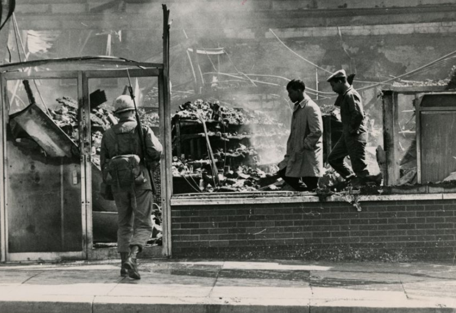 Columbia Heights saw some of the worst of the property damage. The Giant supermarket on Park Road, which had just opened in 1966, survived the four days of chaos and later partnered with Sacred Heart Church and St. Stephen and the Incarnation Church to provide people in the neighborhood with provisions. But Columbia Heights was forever changed. Many businesses were burned, and many that weren’t closed anyway. Along the length of 14th Street from Logan Circle to Park Road, 270 of 320 businesses were destroyed – plus around 4,000 homes.