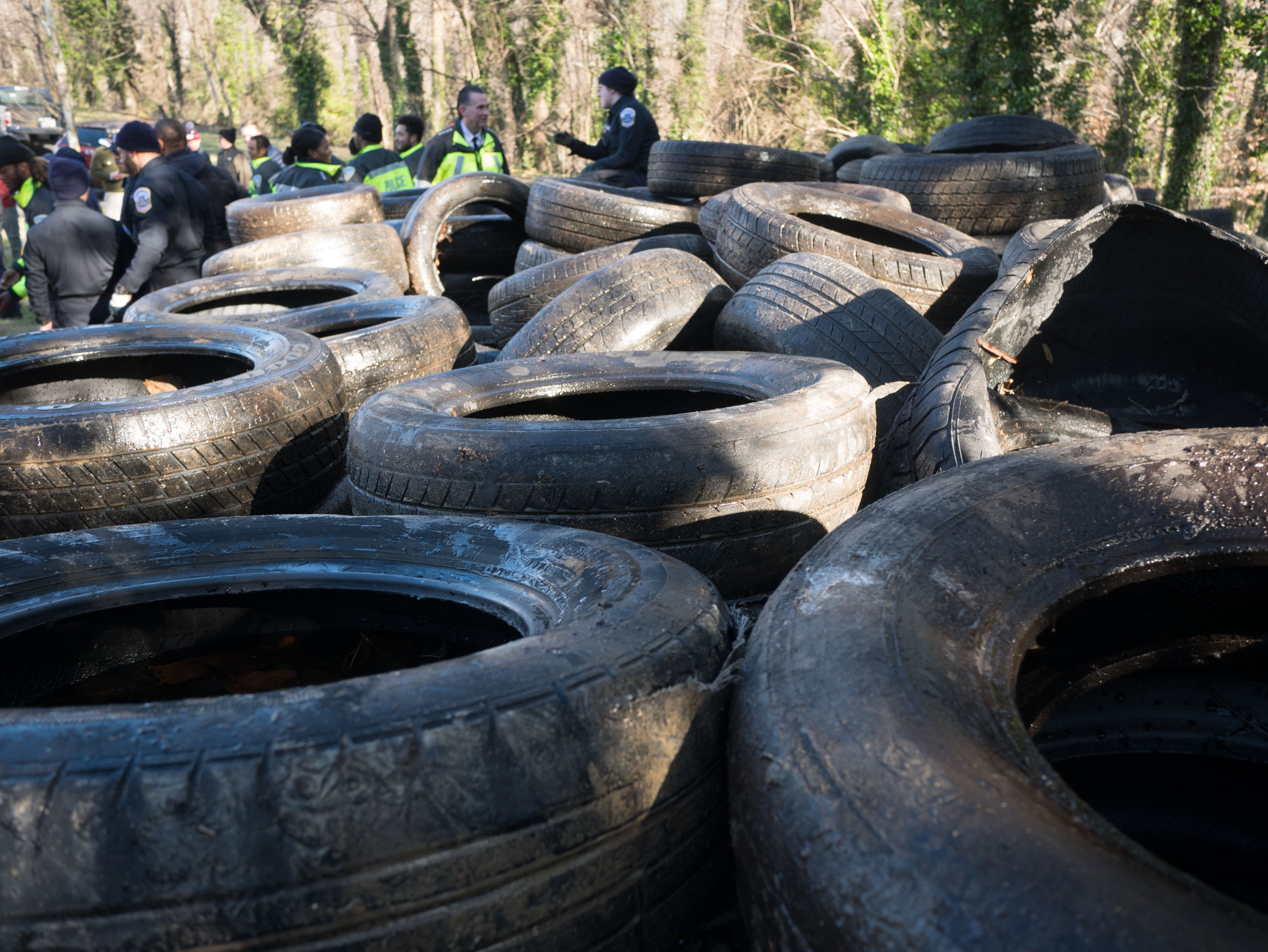 D.C. police, DOEE employees, and volunteers with the Anacostia Watershed Society spent the morning removing the tires.