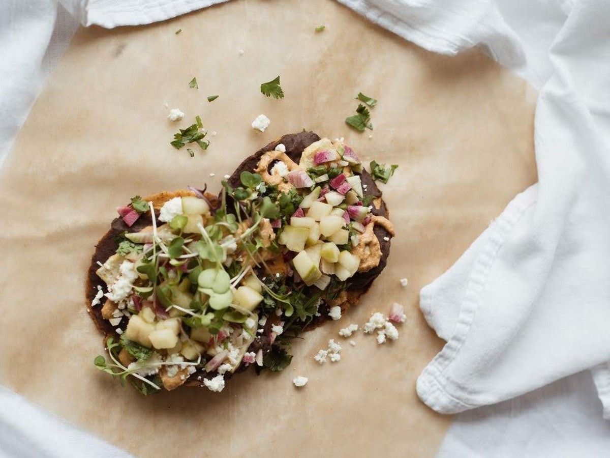 Available at both locations of Chaia—including the new restaurant at Mt. Vernon Triangle—the dish takes two house-made crisped tostadas and tops them with a cold weather bounty, including black beans, slightly tart feta, house-pickled apples, a pumpkin seed sauce called pipián, and roasted celery root ($10). A different seasonal version is in the works for the sunnier months. “We’re mindful about food waste,” and the tlayuda very much fits with that mission, says Simon. “We’re about eating more vegetables because they last on your shelf.”