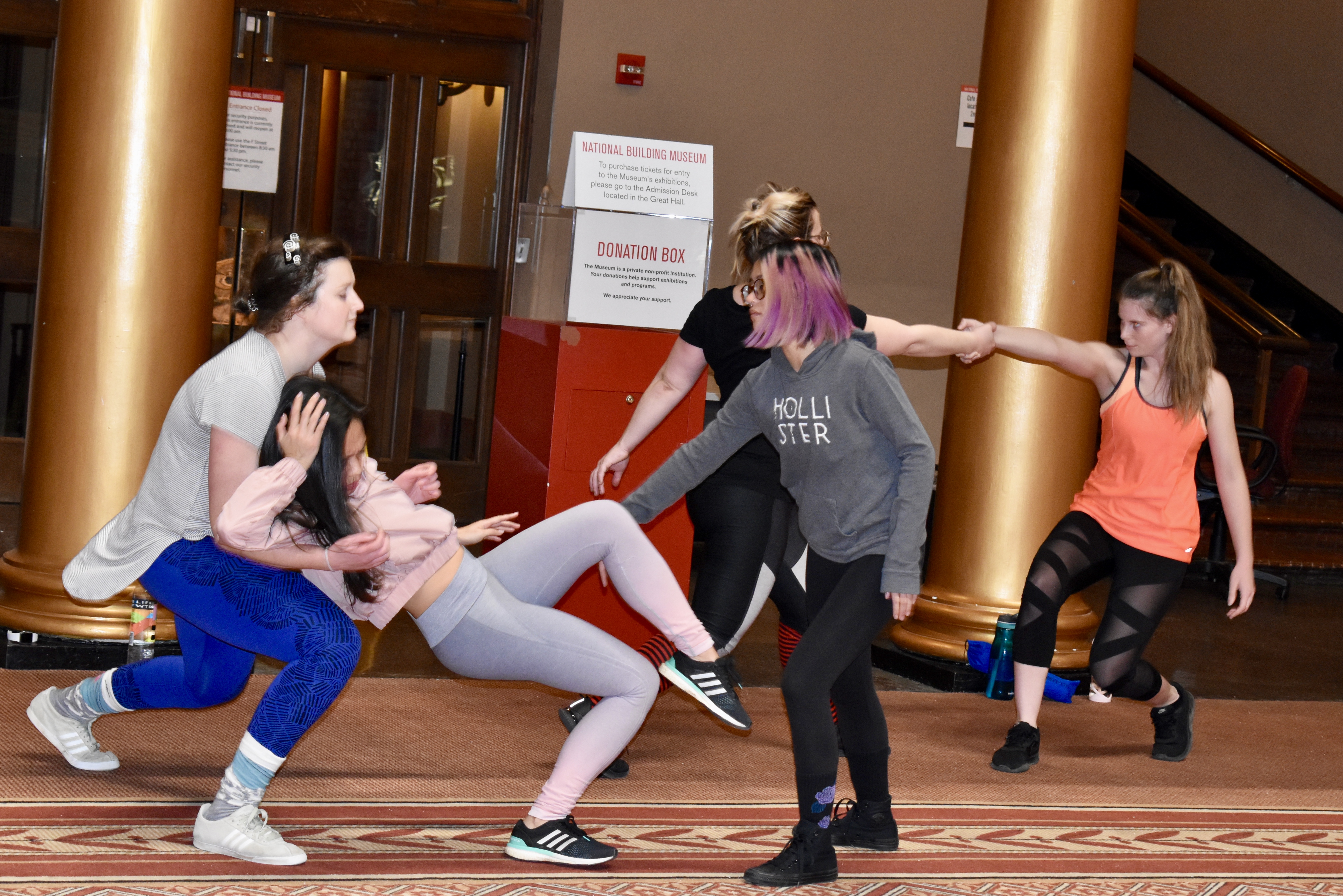 But on a recent weeknight at the National Building Museum, about 20 adults gathered not for an architecture or history tour but to chasse, do trust falls, and form human pyramids with strangers. The performers—a mix of formally trained dancers, novices, and architecture enthusiasts who were chosen at an open audition earlier this month—were preparing for Transits and Passages, a site-specific movement experience set to be performed on January 26.