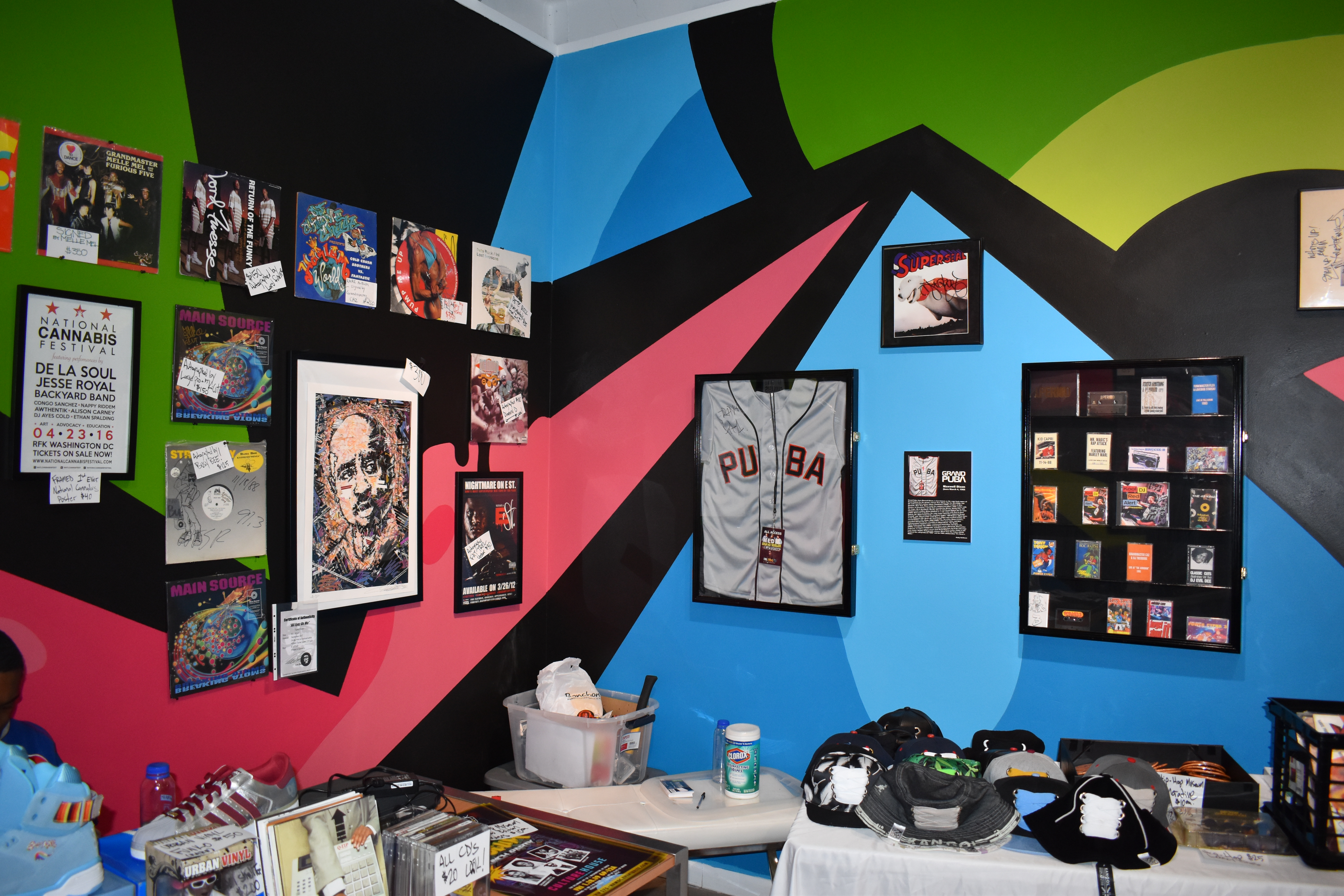The gift shop. Any good museum has to have one of these, and the Hip-Hop Museum is no exception. Purchase options include original artwork, lace-up caps and autographed vinyl.