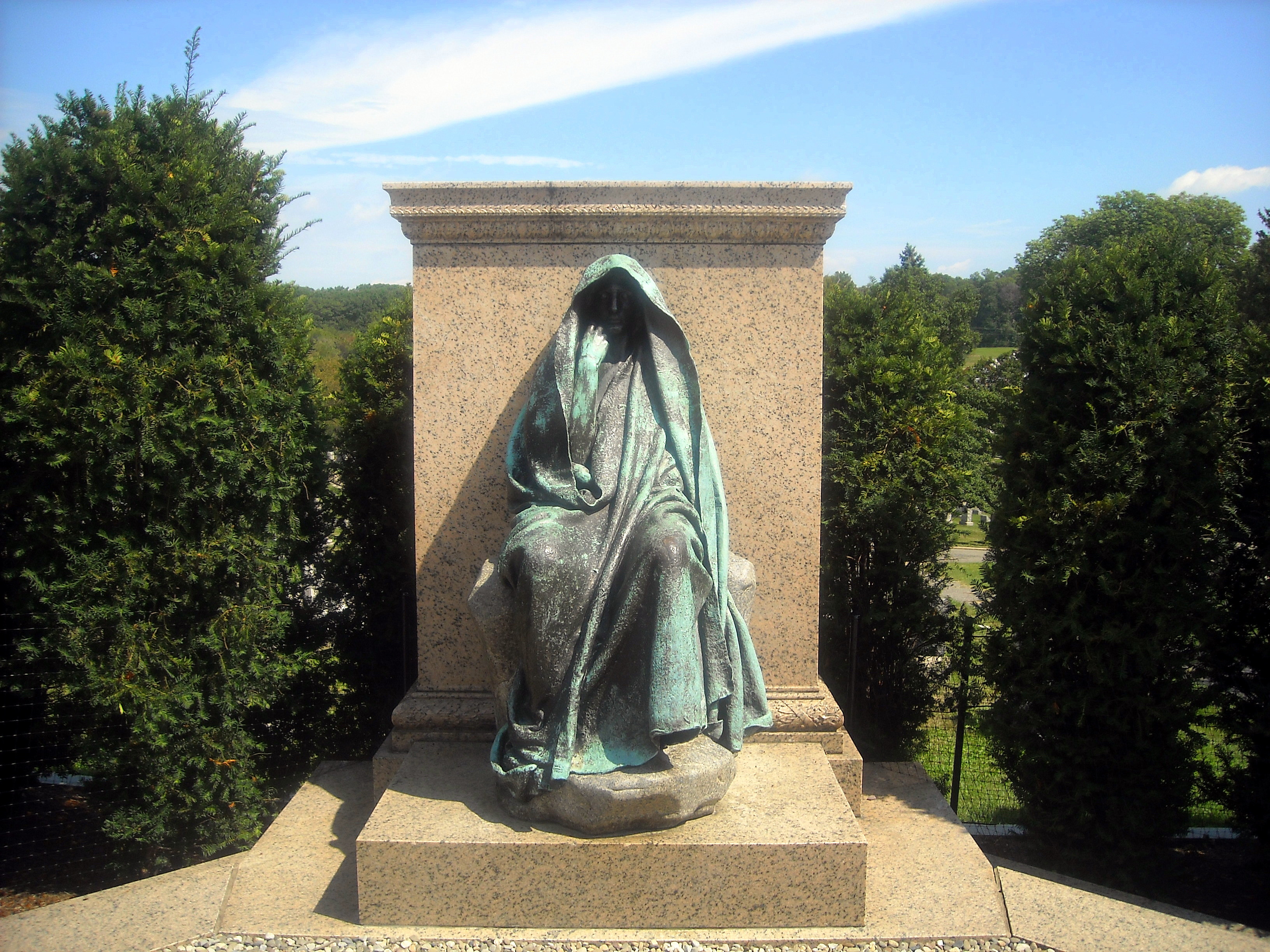 In 1885, the photographer Clover Adams committed suicide by drinking potassium cyanide, a chemical she used to develop photographs. A year later, her husband, the poet Henry Adams, commissioned Augustus Saint-Gaudens to create a memorial dedicated to his late love. So, stricken by grief, Adams refused to talk about her and told Saint-Gaudens to make no mention of her name in the sculpture. What resulted is a shrouded androgynous figure with a simple blank pose that doesn’t reveal who the monument is dedicated to. For many, it is a physical resemblance of coping with grief, knowing no real form and unclear in expression. To others, it’s terrifying and haunting.