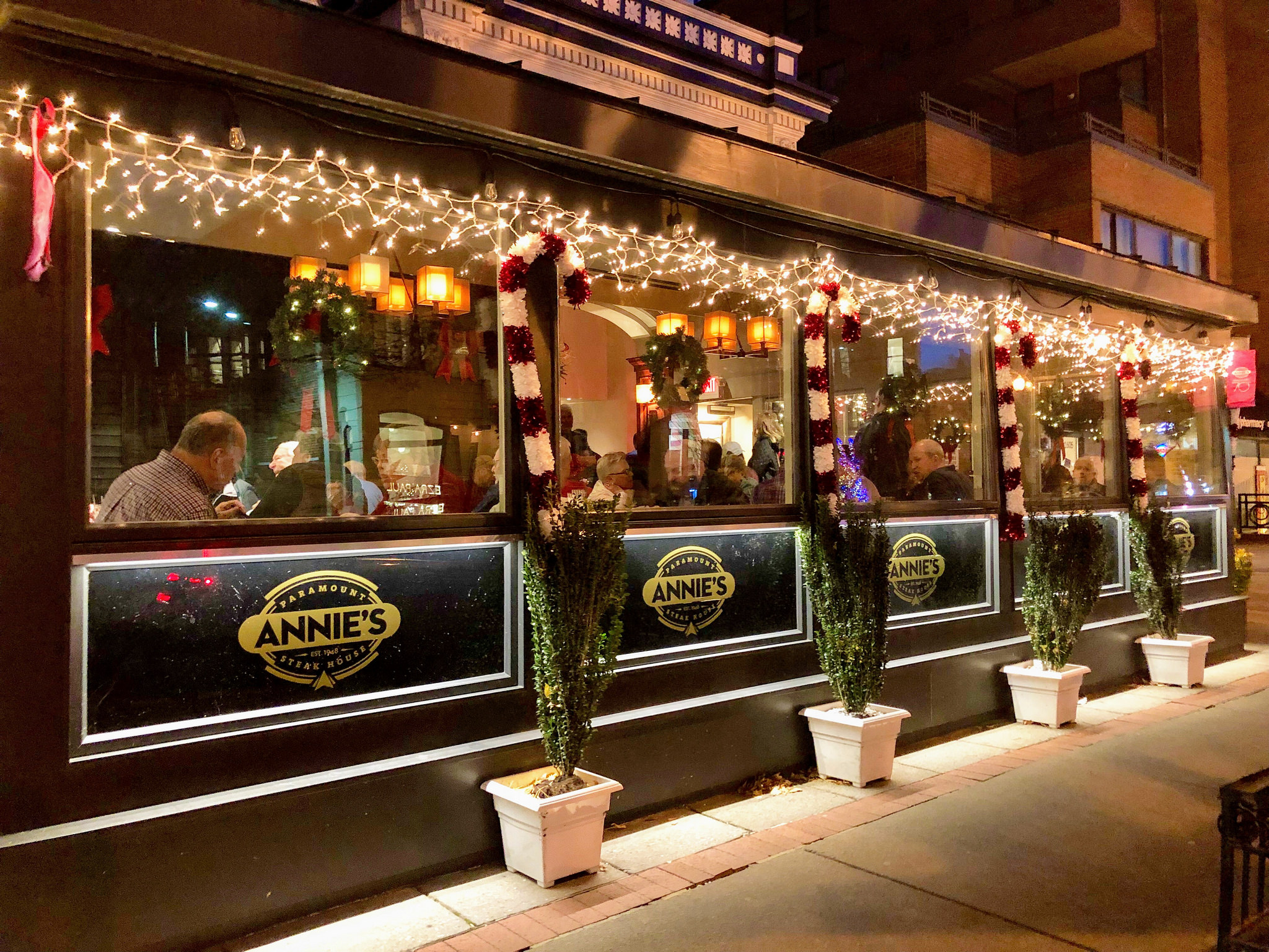 Annie was the sister of owner George Katinas, a World War II Army veteran who cooked and hired his sisters to work behind the bar. His son, Paul, now runs the business. Annie’s name was added to the Paramount Steakhouse in the 1960s—Paxton says it’s because everyone had informally started calling the restaurant Annie’s because of her exuberant personality. As her Washington Post obituary from 2013 describes, “She was known for mixing excellent Manhattans, which she stirred with her finger. As she served one customer, she would call out, loud enough to be heard in the street, ‘Who’s next?’”