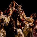 Folger’s treatment of Nell’s rise is both loving and resplendent. Crimson curtains frame the wooden stage. Mariah Anzaldo Hale’s luxurious costumes, worthy of haute couture catwalks, drape these characters, many of whom are knowingly silly. Majestic instrumentals, courtesy of Matt Otto, cue irreverent scene changes.