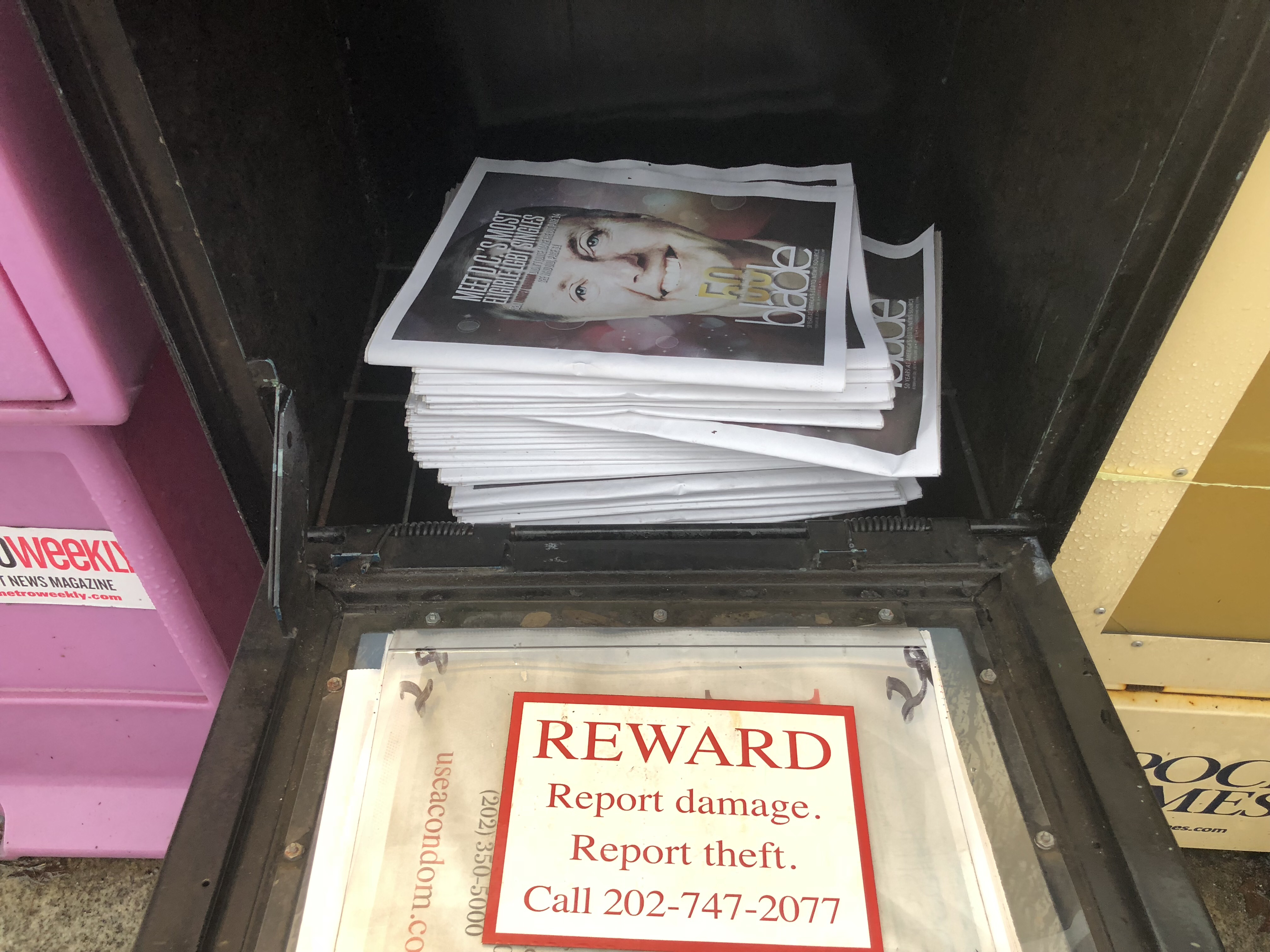 Because the Blade is a free newspaper, people can take however many they’d like. Browne has advocated in the past for a law that would criminalize the act of taking the whole stack so that others can’t read it. Indeed, the “Criminal Penalties for the Theft of Newspapers Act” was introduced at the D.C. Council in 2014, after “newspaper publishers have reported an ongoing problem of vandalism and theft of all the newspapers from newspaper distribution boxes,” according to a letter from then-Mayor Vincent Gray. The bill never made it out of committee.