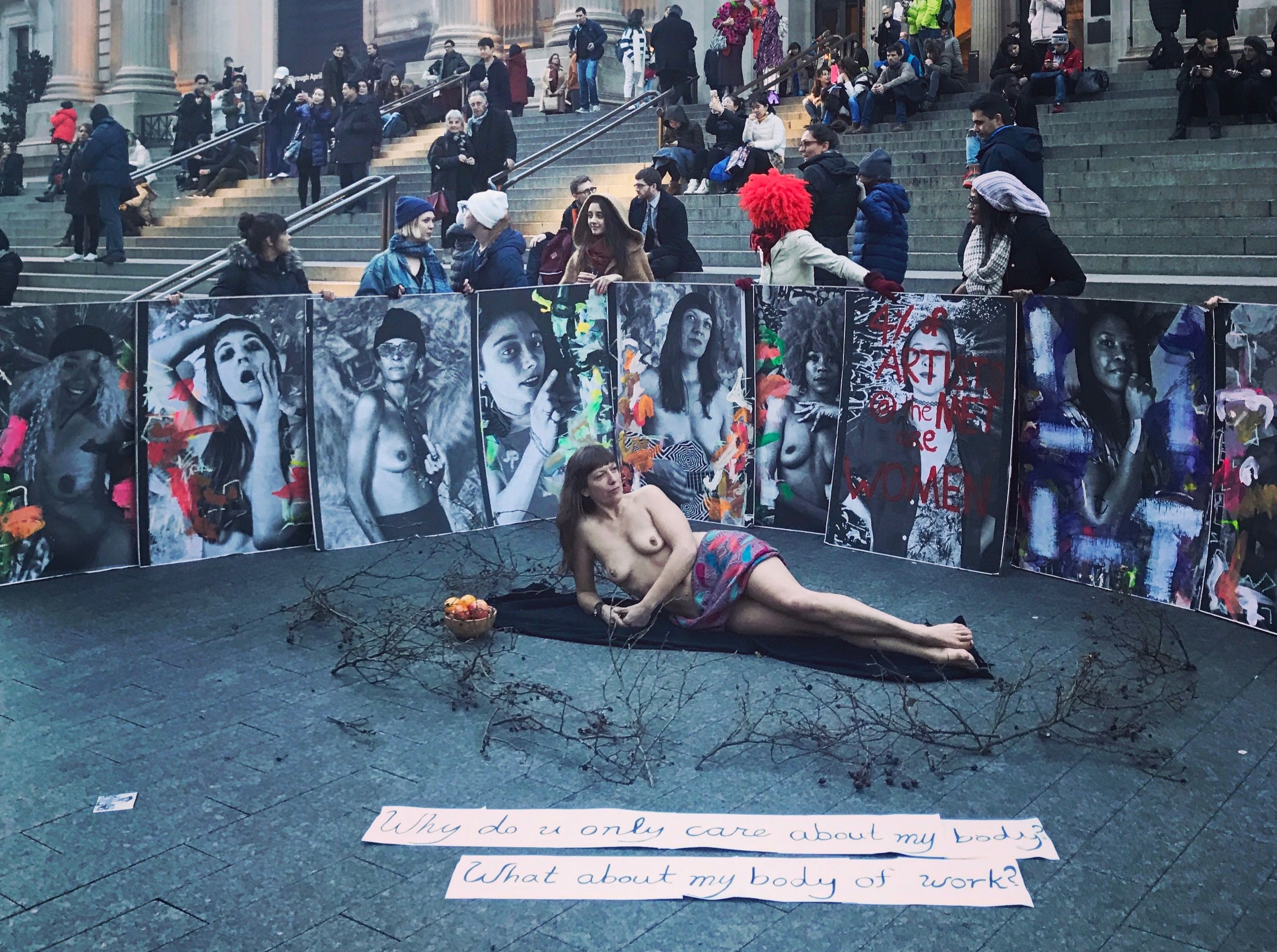 Today’s event is a second iteration of an event Radical Matriarchy staged last Valentine’s Day at the Metropolitan Museum of Art. Leona took 21 pieces of art created by women to the New York museum, saying that they were protesting the fact that only 4 percent of the artists on display at the museum are women. (Last year’s study puts that number at 7.3 percent.) That day included live performances including spoken word, dance, and music.