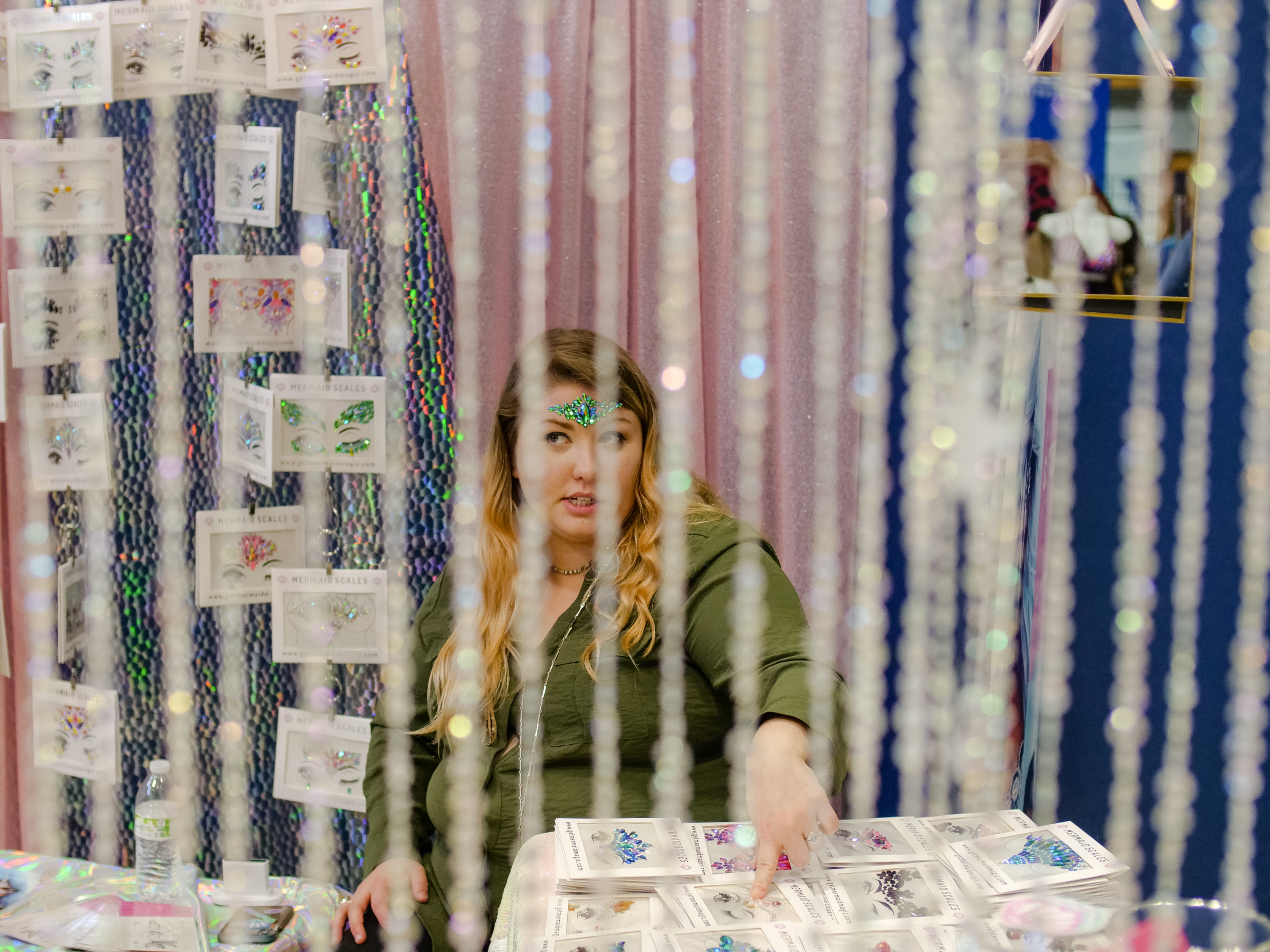 There’s also a booth selling reusable maxi pads. What’s the connection between periods and mermaids? “They help reduce waste, which is very important if you live in the ocean,” the shop owner tells me.
