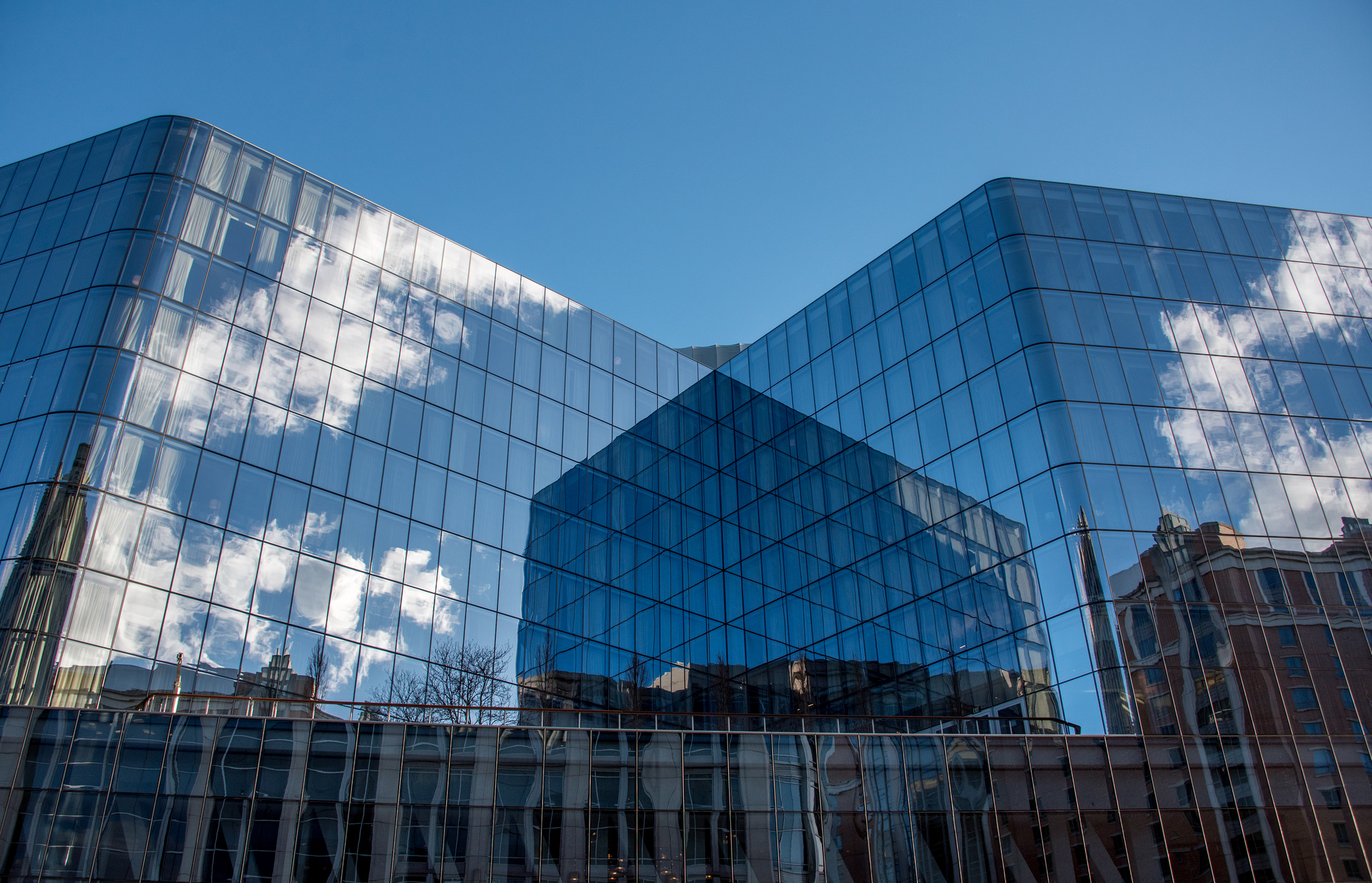 Buildings reflect off one another on New York Avenue.