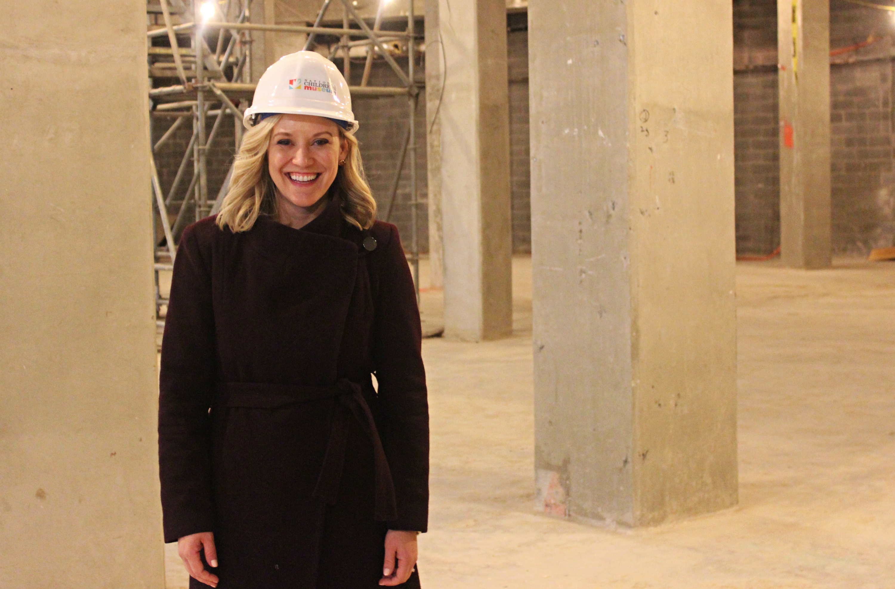 National Children’s Museum president and CEO Crystal Bowyer stands inside what will be the museum’s main exhibition hall.Mikaela Lefrak / WAMU