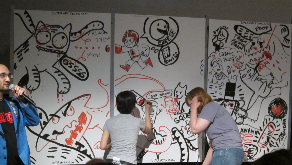 ART BATTLE ROYALE: Super Art Fight, dubbed equal parts pictionary and pro wrestling, turns painting a 6 foot tall, 12 foot wide canvas into a competitive frenzy. Friday’s Golden Gauntlet includes 20 artists fighting five at a time: Only the strongest survive, and audience participation is absolutely required. (Black Cat, 8 p.m., $15)