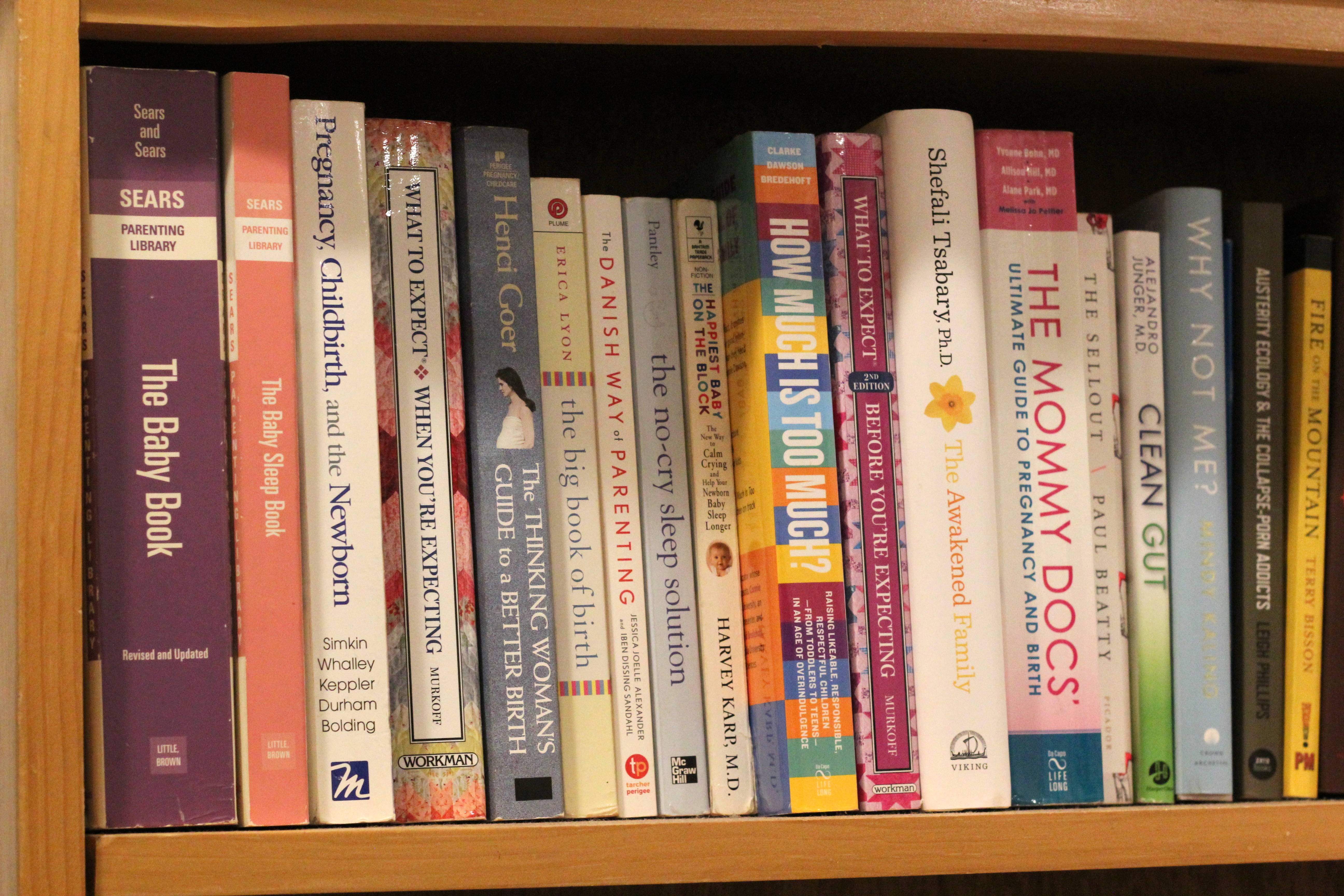 D.C.’s impending policy has taken a lot off of Wynn and Poms’s minds. And they’re focusing on other ways to prepare to start their family. They’re preparing to move to an apartment with room for a nursery. And Wynn has been collecting books on pregnancy and parenting, mostly from thrift stores. They’re lined up on a shelf in their kitchen.