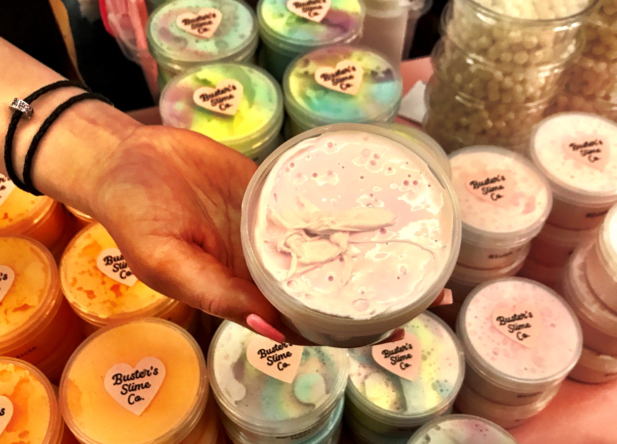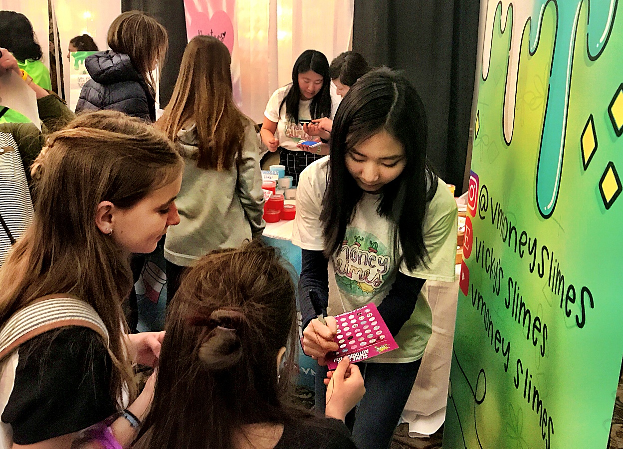 The expo hall is filled wall to wall with young enthusiasts (and their parents) meeting, greeting, and buying from these slime celebs. Young girls are smiling ear to ear as they take pictures with slightly older girls who have turned this hands-on hobby into serious business.